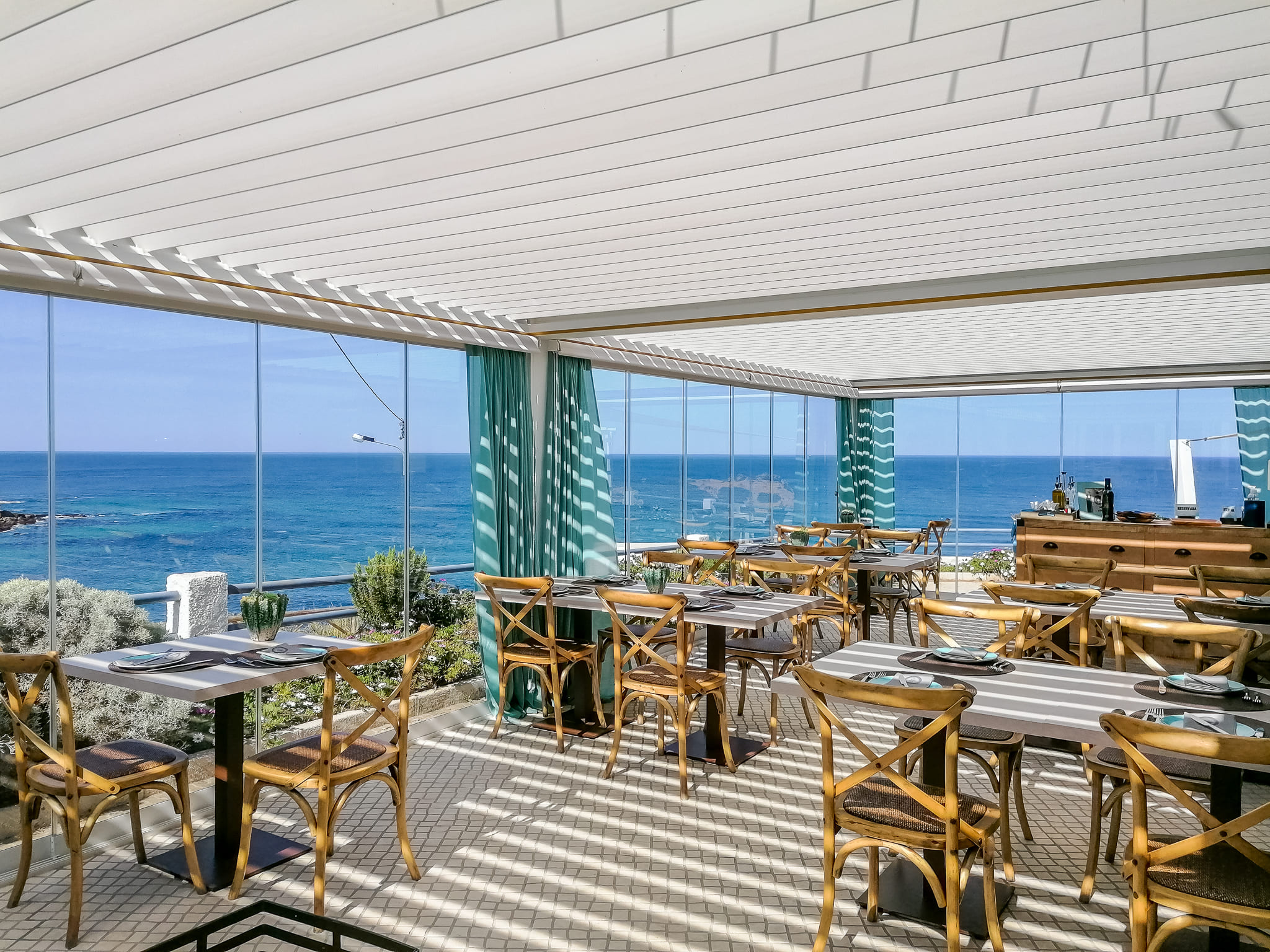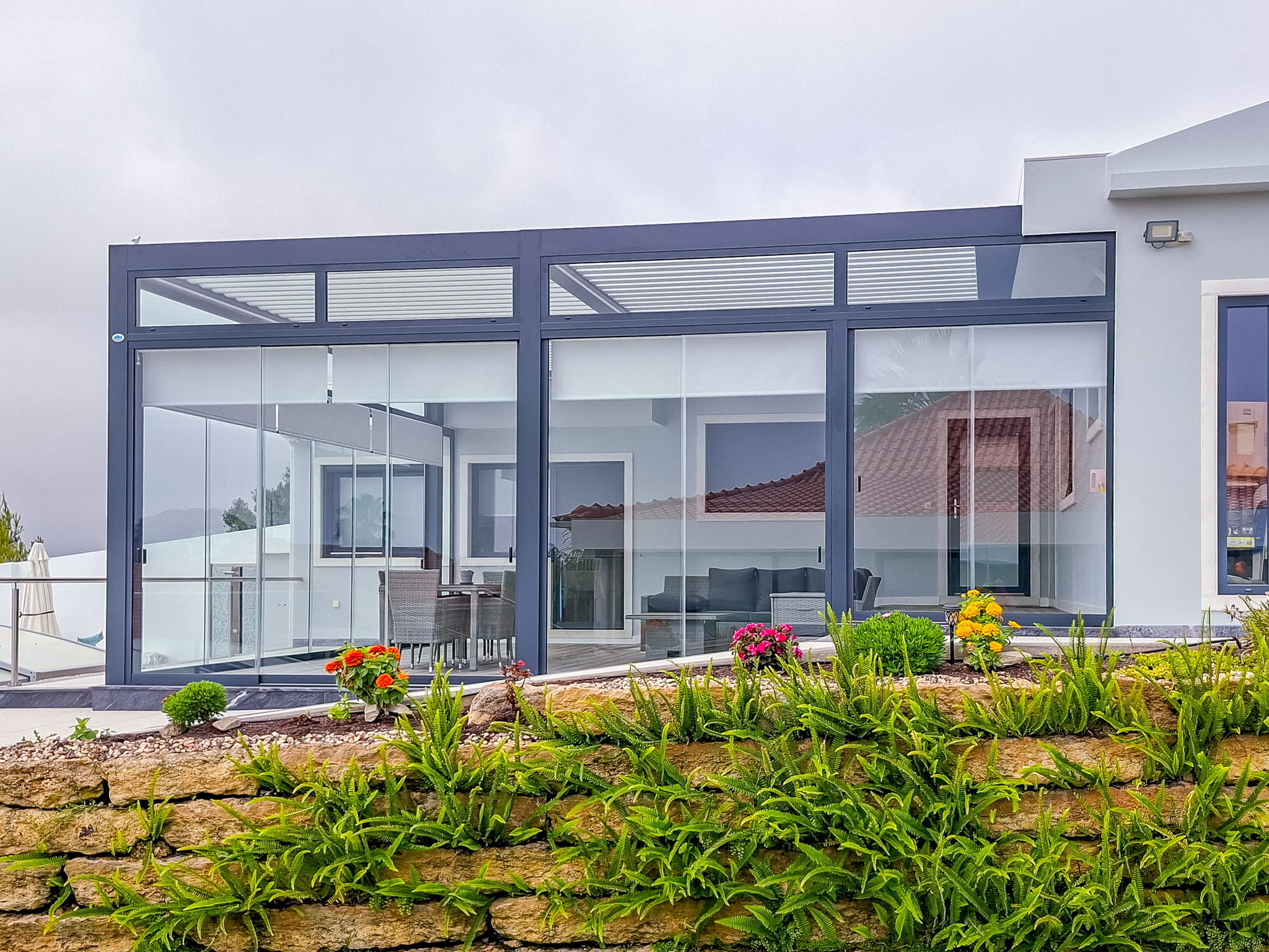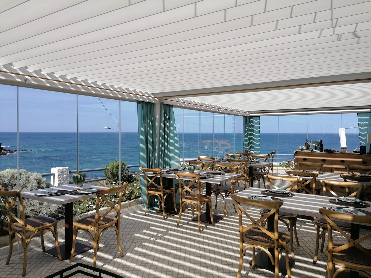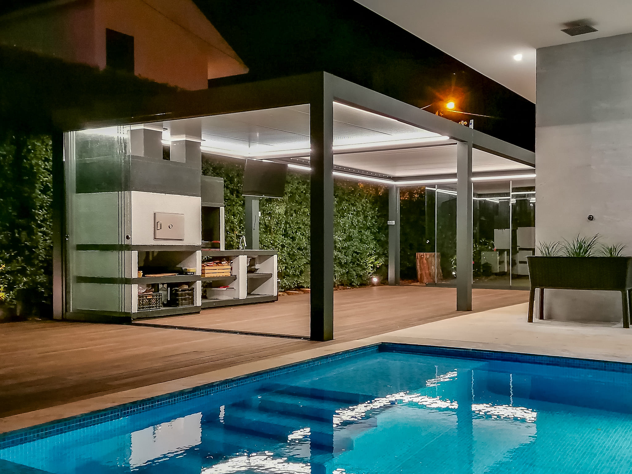 A montagem é rápida e fácil, sem parafusos ou cabos elétricos visíveis. Existe também a opção de incorporar luzes led no perímetro superior, permitindo uma iluminação perfeita e com regulagem de intensidade da mesma. Pode também adicionar cortinas de vidro nas laterais, condicionando a entrada de vento no espaço.